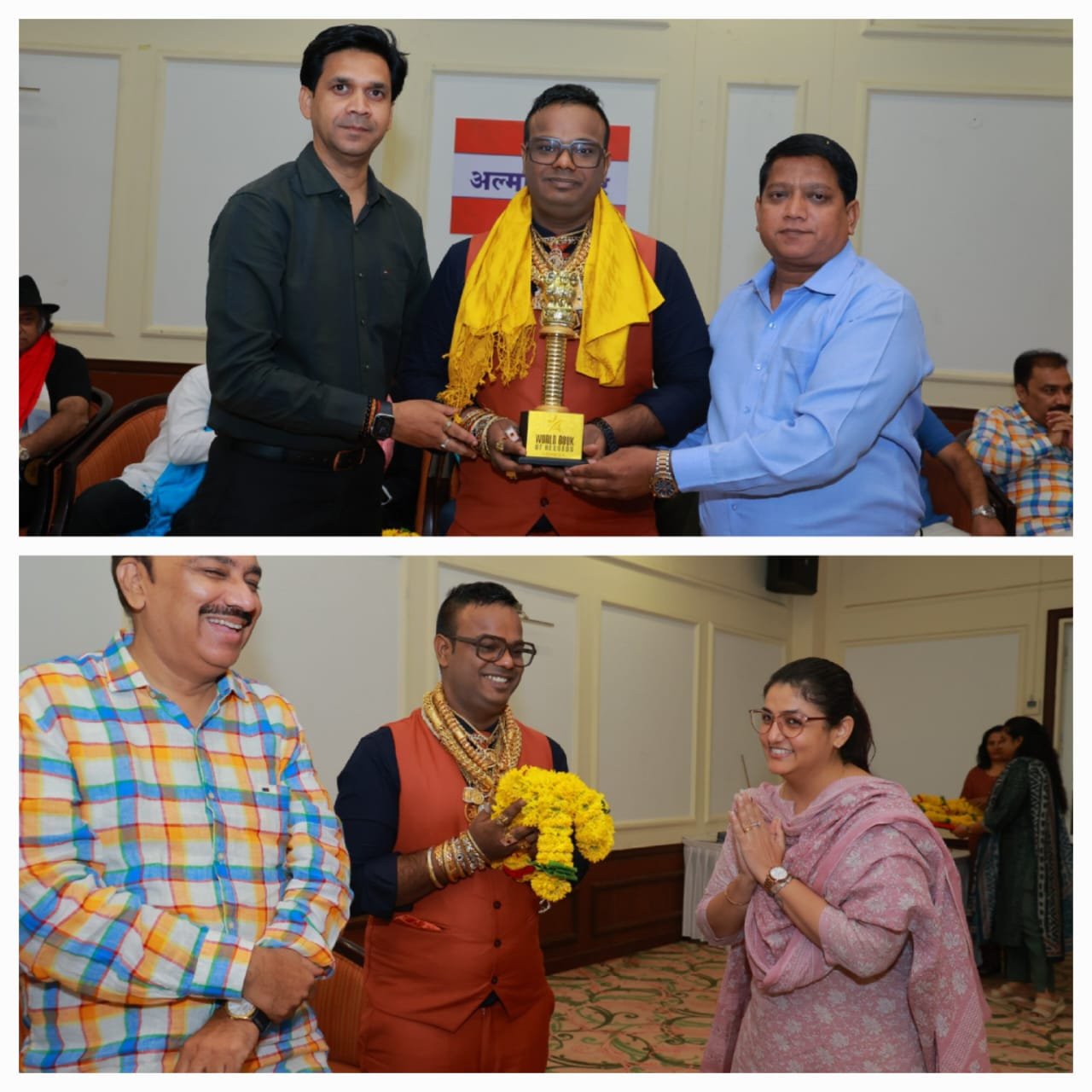 According to information received from sources, in a grand felicitation ceremony organised at the residence of Chandrashekhar Raikwar, member of Madhya Pradesh Public Service Commission, famous film actor Ranjeet, film producer Vinod Bachchan, Jawahar Monga and Usman Khan were also honoured with the World Book of Records trophy. On the same occasion, Indore High Court judge Anil Verma, Indore division commissioner Deepak Singh, IB deputy director Suryaranjan Das, Supreme Court lawyer Santosh Shukla, Alma Times chief editor Dr. Suchita Shukla, Dr. Bharat Sharma and Alma Times director Rajesh Shukla were present.