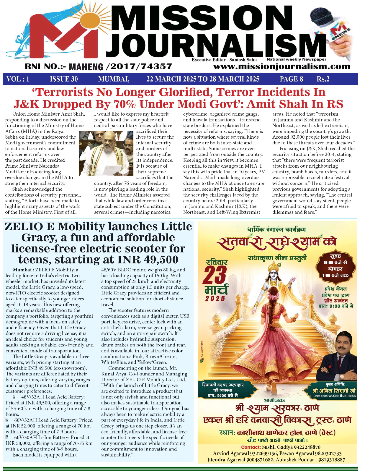 Mission Journalism Epaper - 22 March 2025 to 28 March 2025 0 Epaper March 22, 2025 A+ A- Print Email Mission Journalism Epaper - 22 March 2025 to 28 March 2025